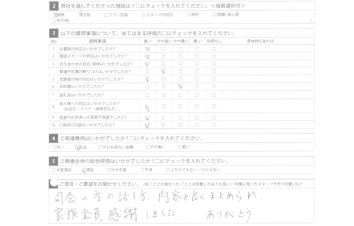司会の方の話し方、内容を良くまとめられ、家族全員感謝しました。 ありがとう