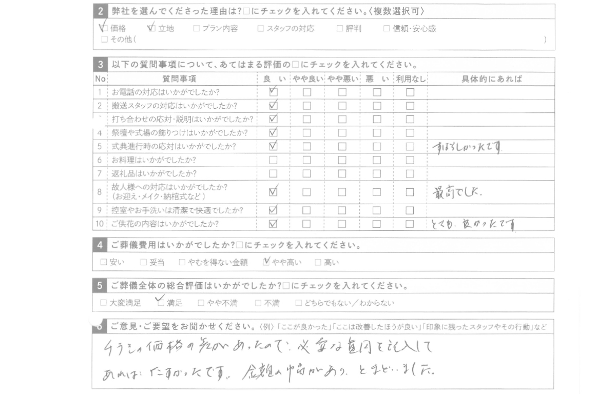 ※葬儀・電話対応などを合わせたのお客様の総合評価です