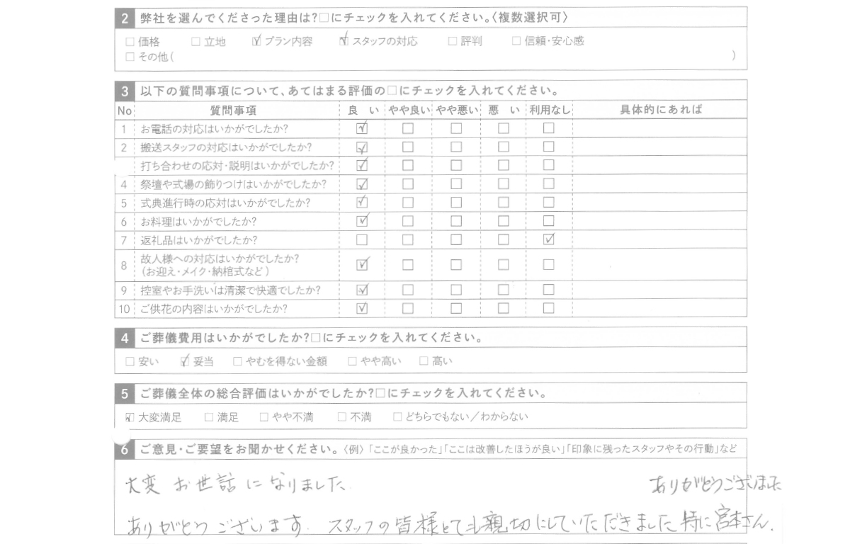 大変おせわになりました。 ありがとうごさいます。スタッフがの皆様とても親切にしていただきました。特に宮本さんありがとうごさいました。