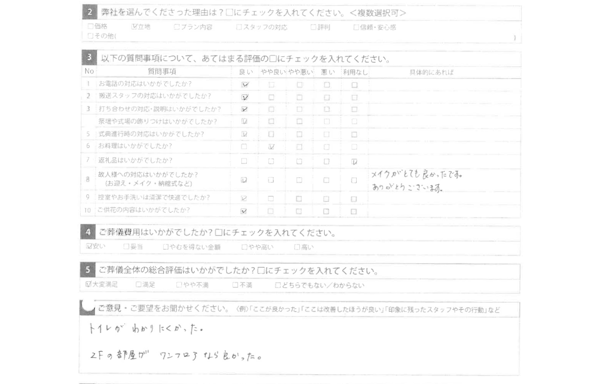 トイレが分かりにくかった。 2F 部屋がワンフロアなら良かった。