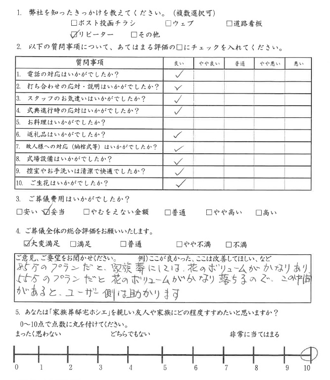 85万のプランだと家族葬にしては花のボリュームがかなりあり55万のプランだと花のボリュームがかなりおちるので、この中間があるとユーザー側は助かります。