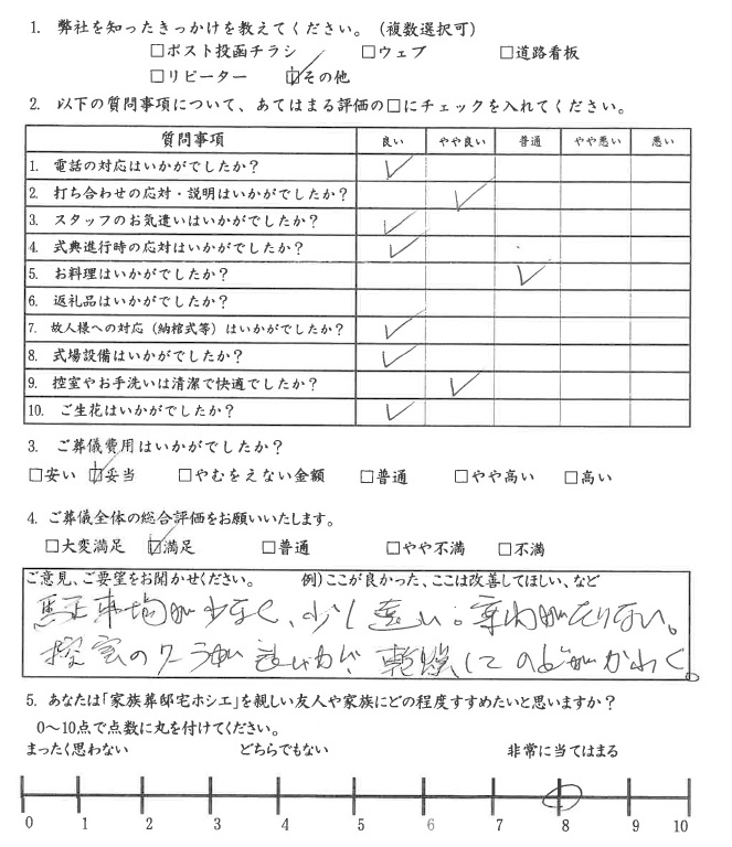 駐車場が少なく、少し遠い。案内がたりない。控室のクーラーが良いが、乾燥にのどがかわく。